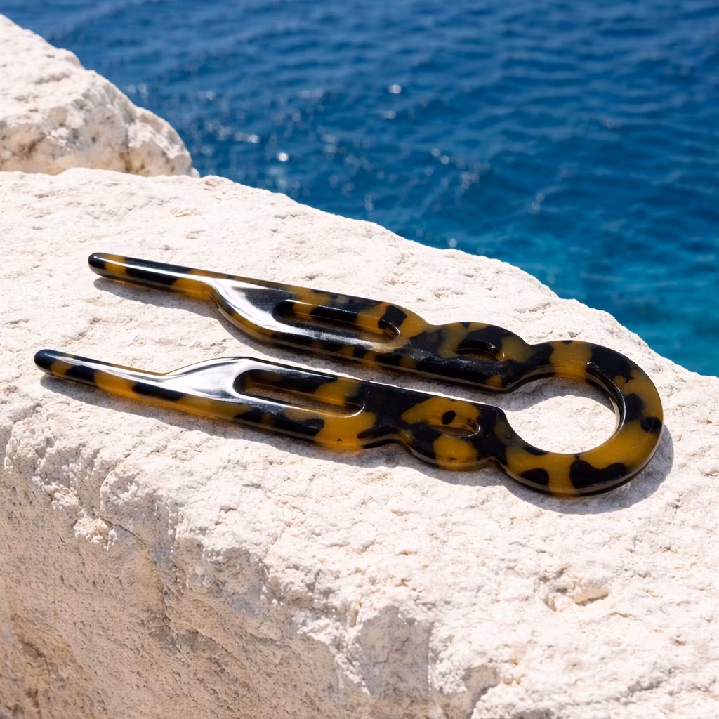 French Upin i brun melerad färg. Ger fina håruppsättningar i knut, bulle eller svinrygg. Passar mellantjockt hår.Utvalda bilder är AI genererade. (bakgrunder)