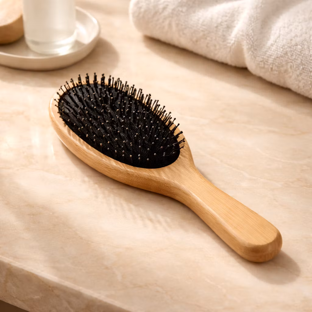 En mjuk hårborste med små och stora piggar för bästa resultat för att reda ut håret och samtidigt ge skön massage för hårbotten. Borsten tar varsamt hand om hår