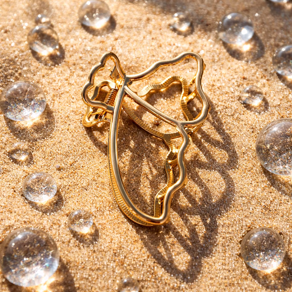 Fin hårklämma i guldfärg formad som en vacker fjäril. Passar väldigt fint i halvuppsättningar, men kan även sätta upp hela håret om du har något tunnare hår.
