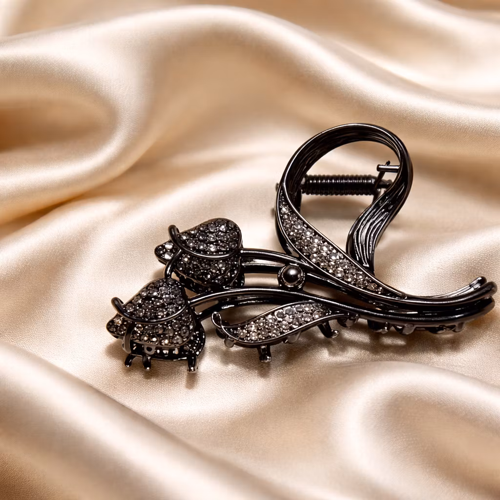 Hårklämma i metall i färg antiksilver. Söt till fest och vardag.Passar till hel- eller halvuppsättningar.Utvalda bilder är AI genererade (bakgrunder)