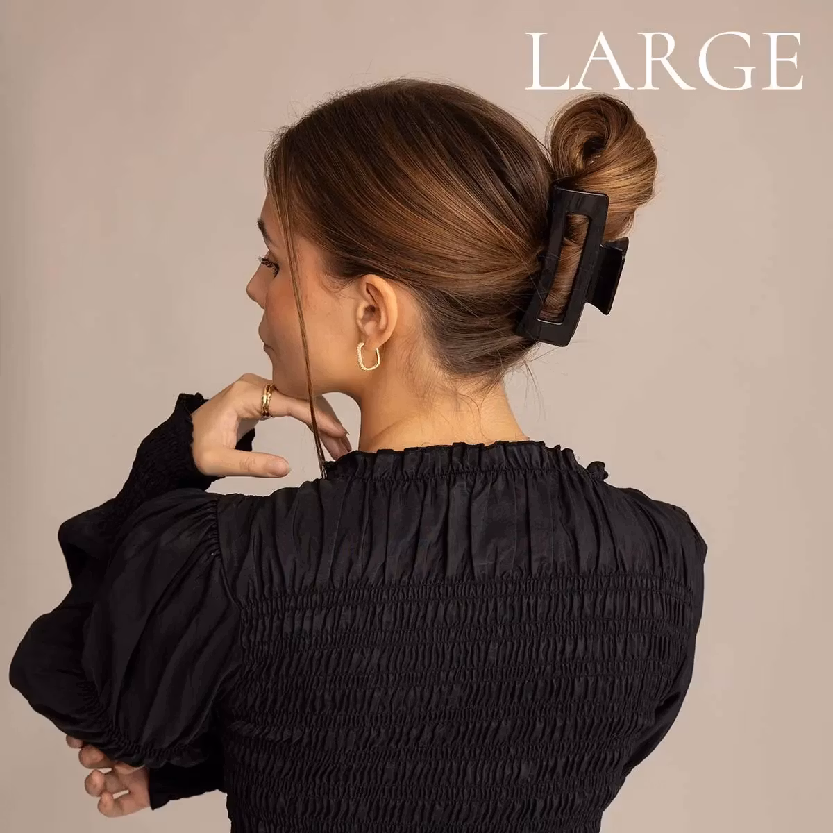Léonie stora hårklämma i en glansig finish gjord i tåligt polykarbonat, passar perfekt för dig som är ute efter en stilren heluppsättning men även halvuppsättning för dig med lite tjockare hår.