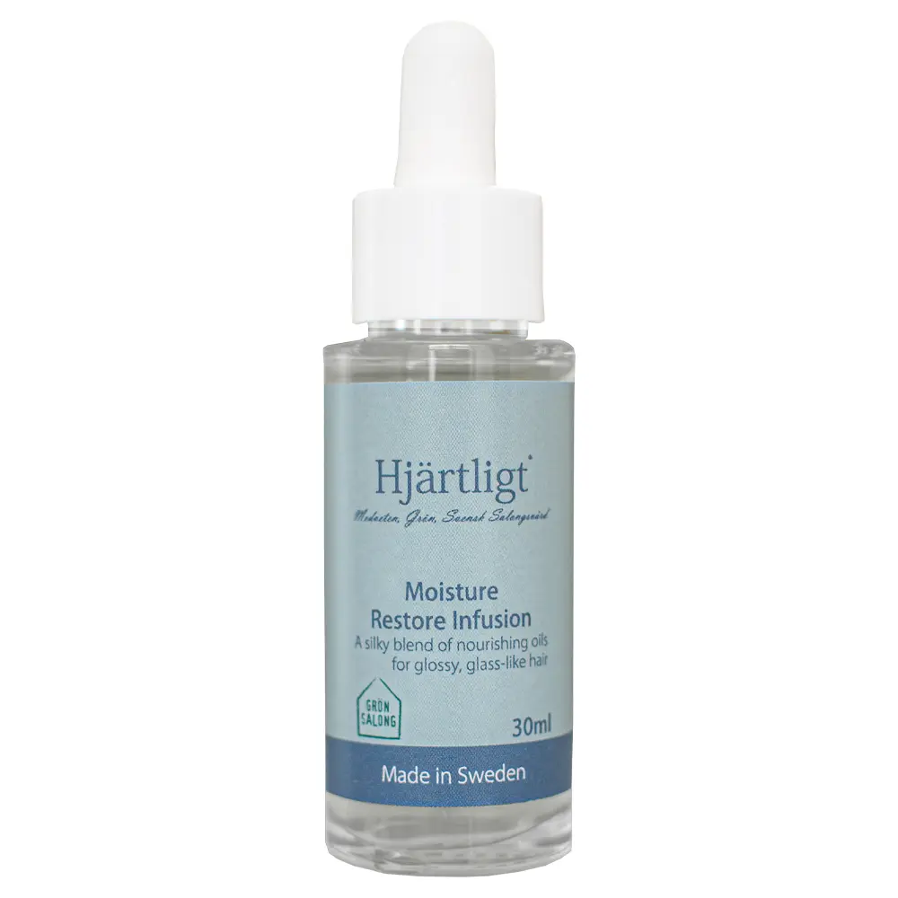 Limited Edition, Moisture Restore Infusion, en vårdande scalp oil framtagen för att ge törstigt hår fukt och balans. Resultatet blir en glansig glas-finish helt