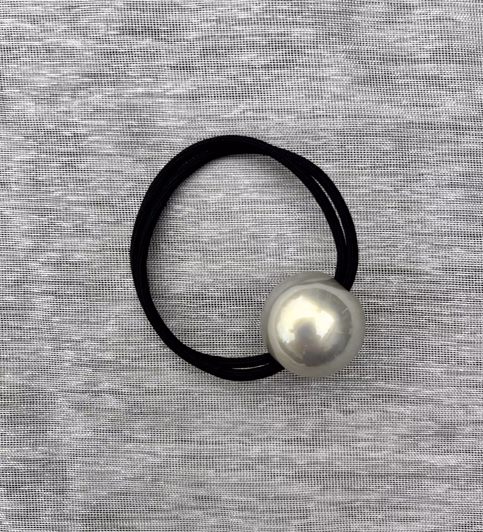 En klädd hårsnodd med en slílverkula som en fin detalj.