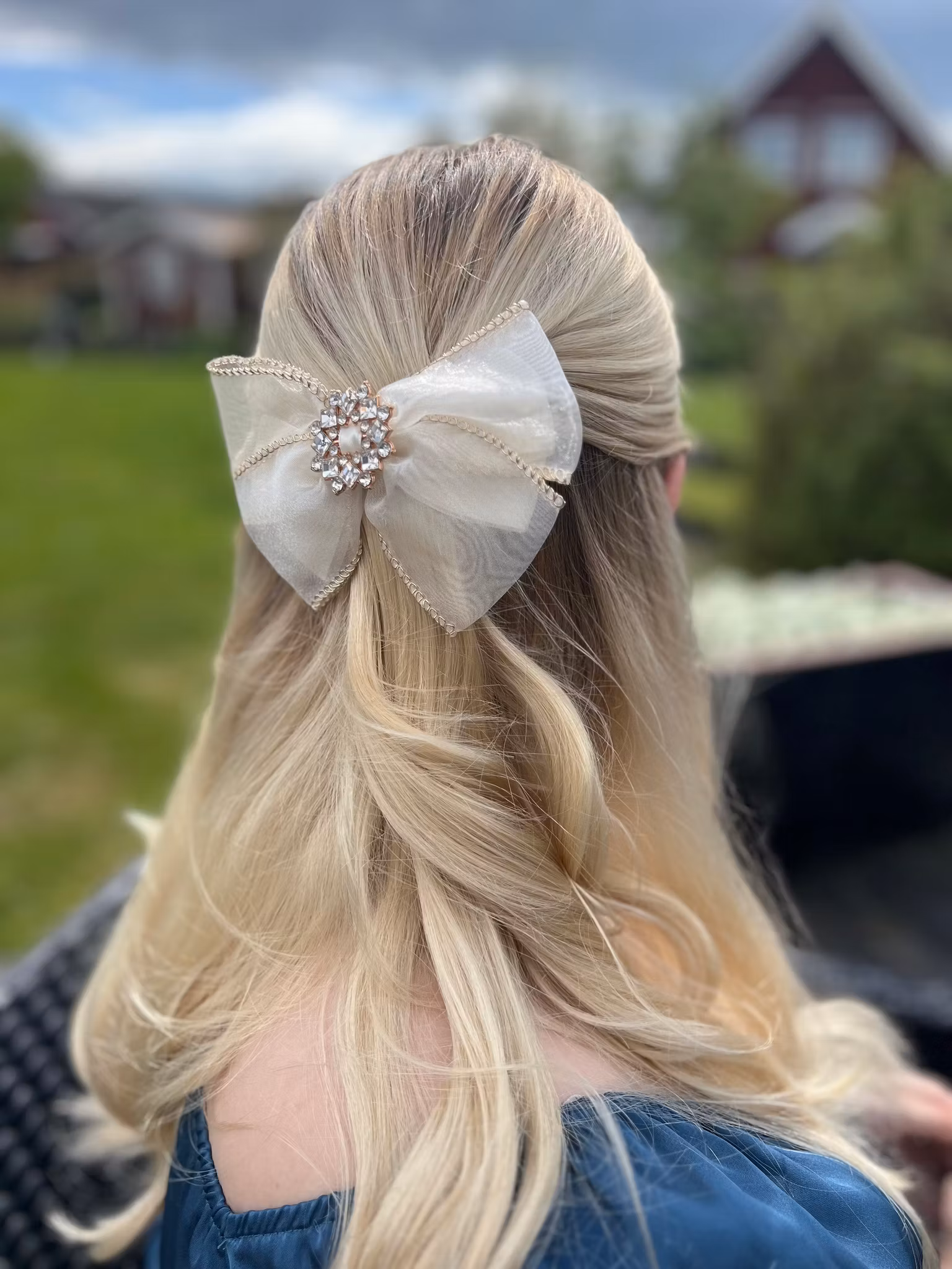 Söt hårklämma i tyg med gulddetaljer.