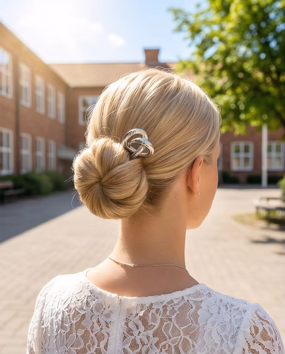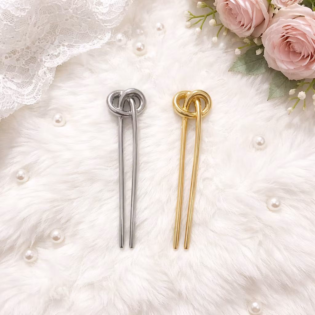 Minimalistisk French Hairpin i guld/silver, formad som en knut som ger fina håruppsättningar. Passar mellantjockt eler tjockt hår.