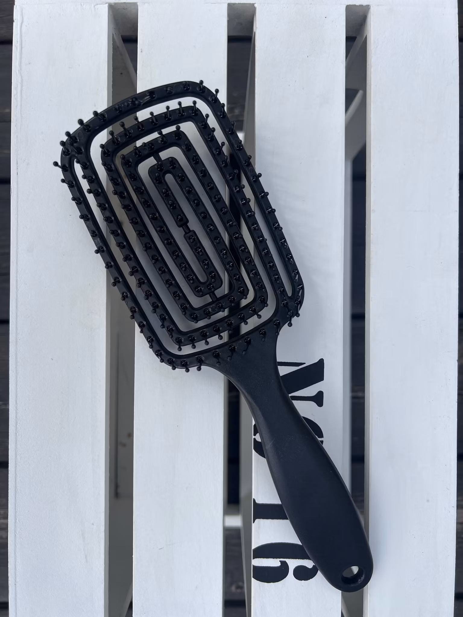 Hårborste Curve reder ut trassigt hår på ett skonsamt sätt. Tack vare de mjuka piggarna reder den ut både torrt och vått hår samtidigt som den masserar hårbotte