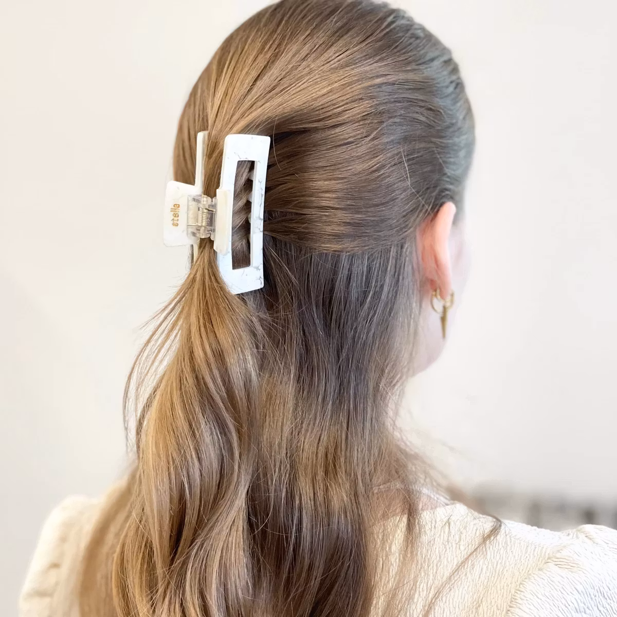 Snygg stor rosa hårklämma i rak design från Stella Details. Den perfekta hårklämman för heluppsättningar för dig med lite längre eller tjockare hår.