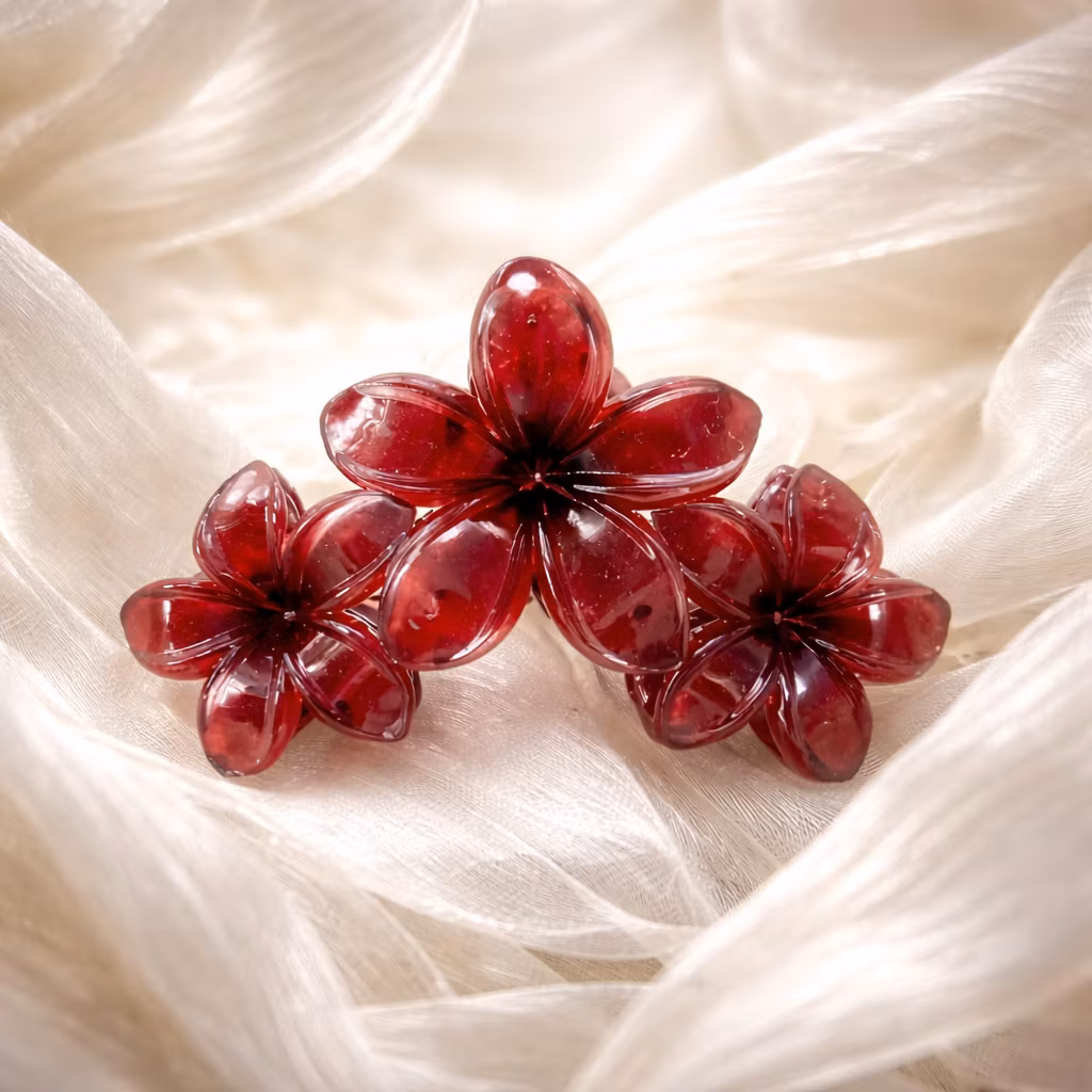 Hårklämma i härlig vinröd färg formad som blommor i rad. Passar den som har nellantjockt eller tjockt hår.