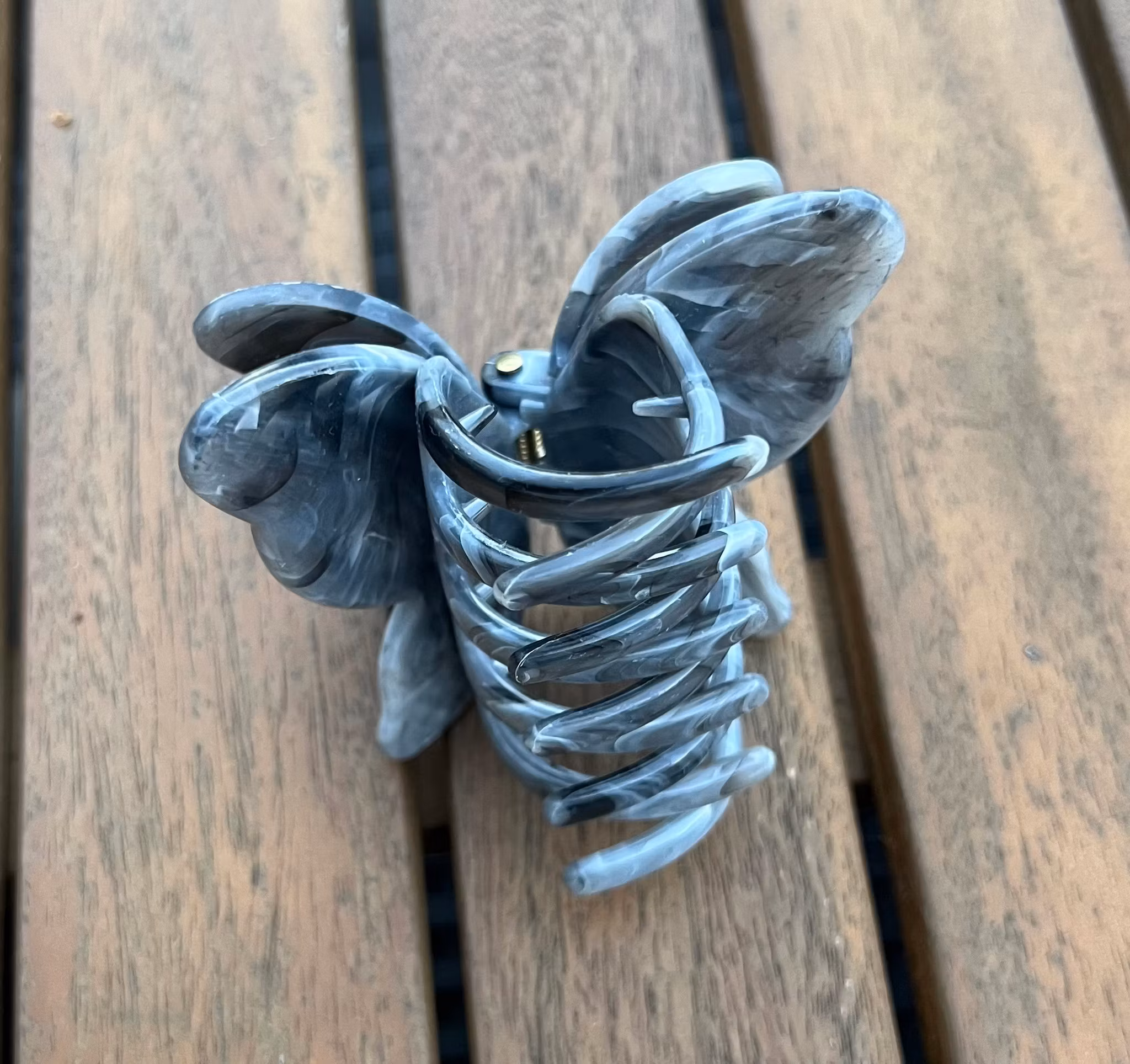 Vacker hårklämma i grå marmorliknande färg. Superfin till halvuppsättningar.