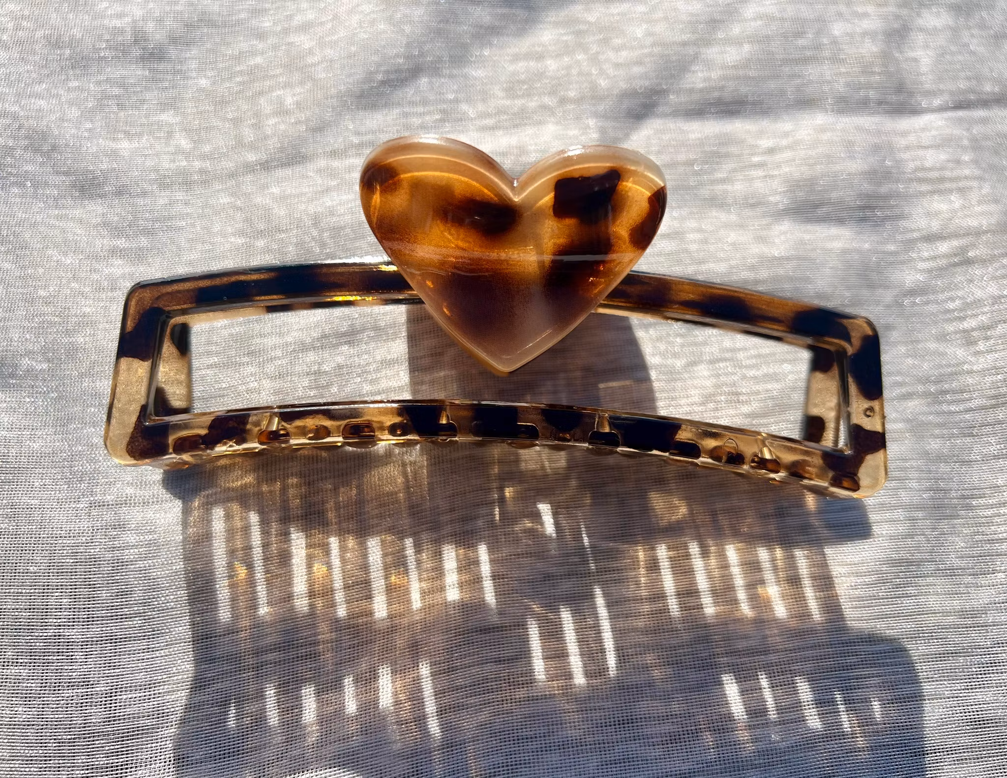 Stor hårklämma med ett vackert hjärta i rak modell för tjockt och mycket hår.