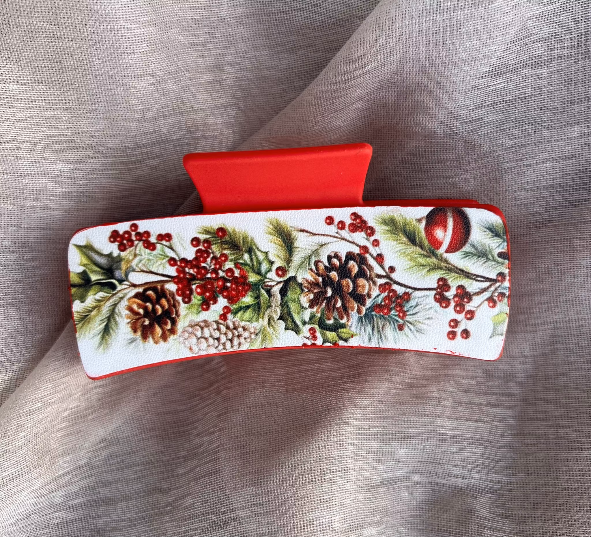 Söt håklämma med vackert julmotiv. Passar mellantjockt eller tjockt hår. Så fin till julafton eller julfesten.