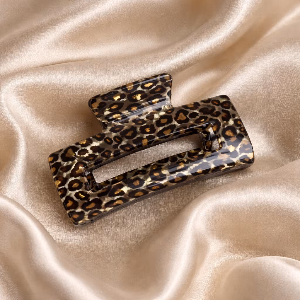 Hårklämma i leopardmönster i brun färg. Passar för den med mellantjockt eller tjockt hår.