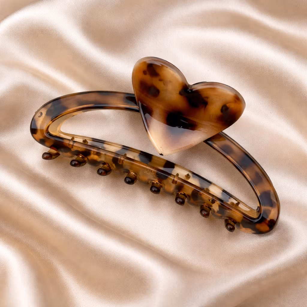 En stor hårklämma i brunt leopardmönster och med en hjärta i klämman för dig med tjockt och mycket hår.