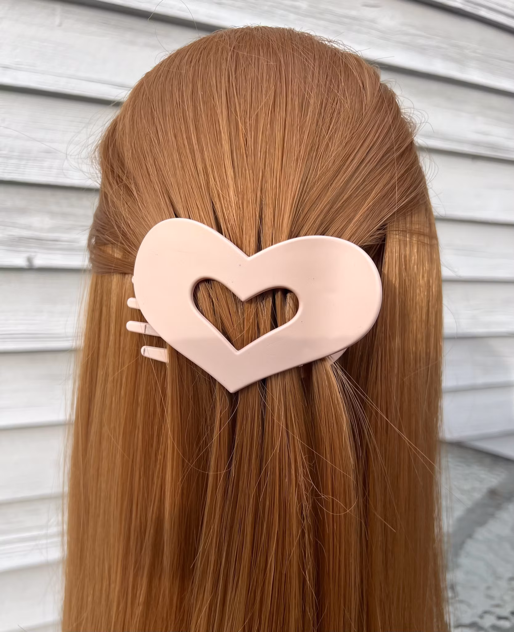 Den populära platta hårklämman formad som ett hjärta i ljus beige, säljes i 2-pack.