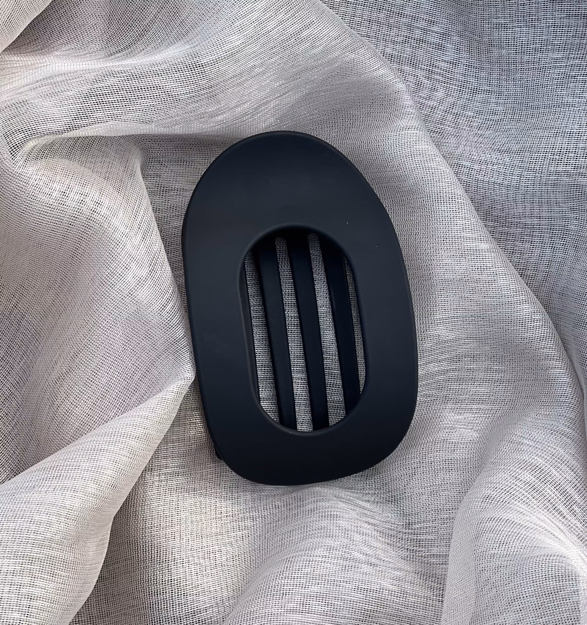 Hårklämma Platt är lite plattare än många andraklämmor och därför väldigt populär när man t.ex sitter i soffan och skall luta huvudet bakåt, eller när man är på jobbet, i skolan osv.. Den är matt svart och passar lite tjockare hår.