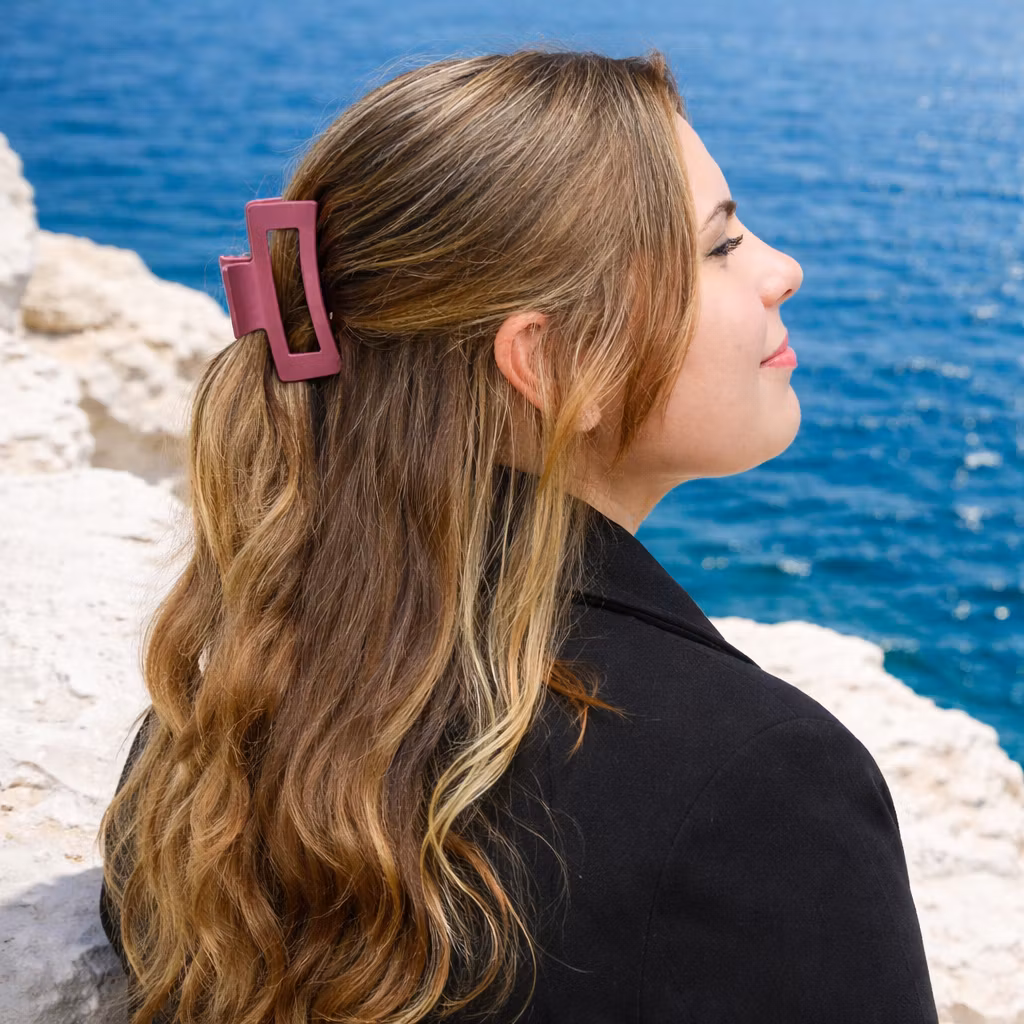 Rak snygg klassisk hårklämma i matt djupröd färg. Denna klämma sitter bra i både tunnare eller tjockare hår tack vare den starka fjädern samt de täta taggarna. Denna har även små taggar på insidan som gör att den sitter bra även i tunnare och mjukare hårtyper. Ca 8 cm