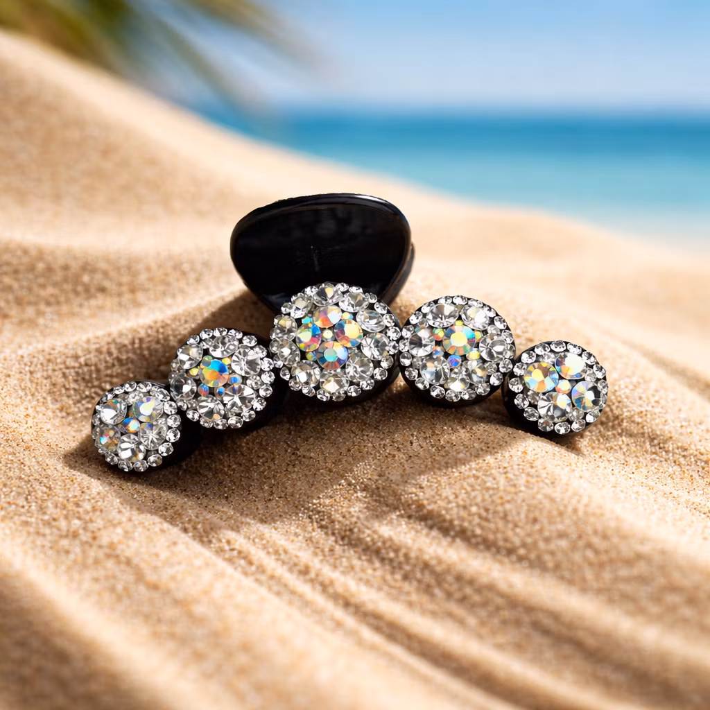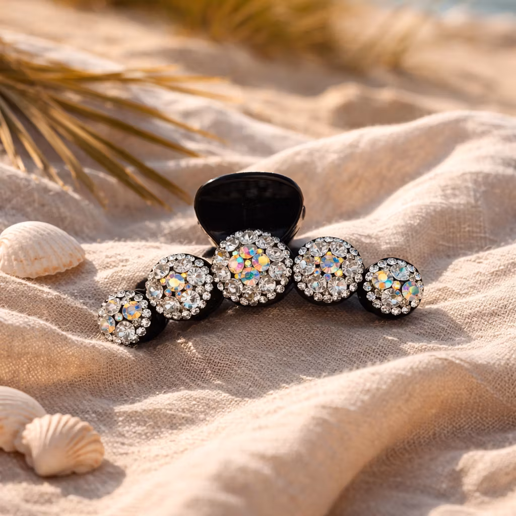 Stilren och festlig hårklämma i svart och strass passar till lite festligare tillfällen. Fin i både hel- eller halvuppsättningar och sitter bra i de flesta hårtyper.
