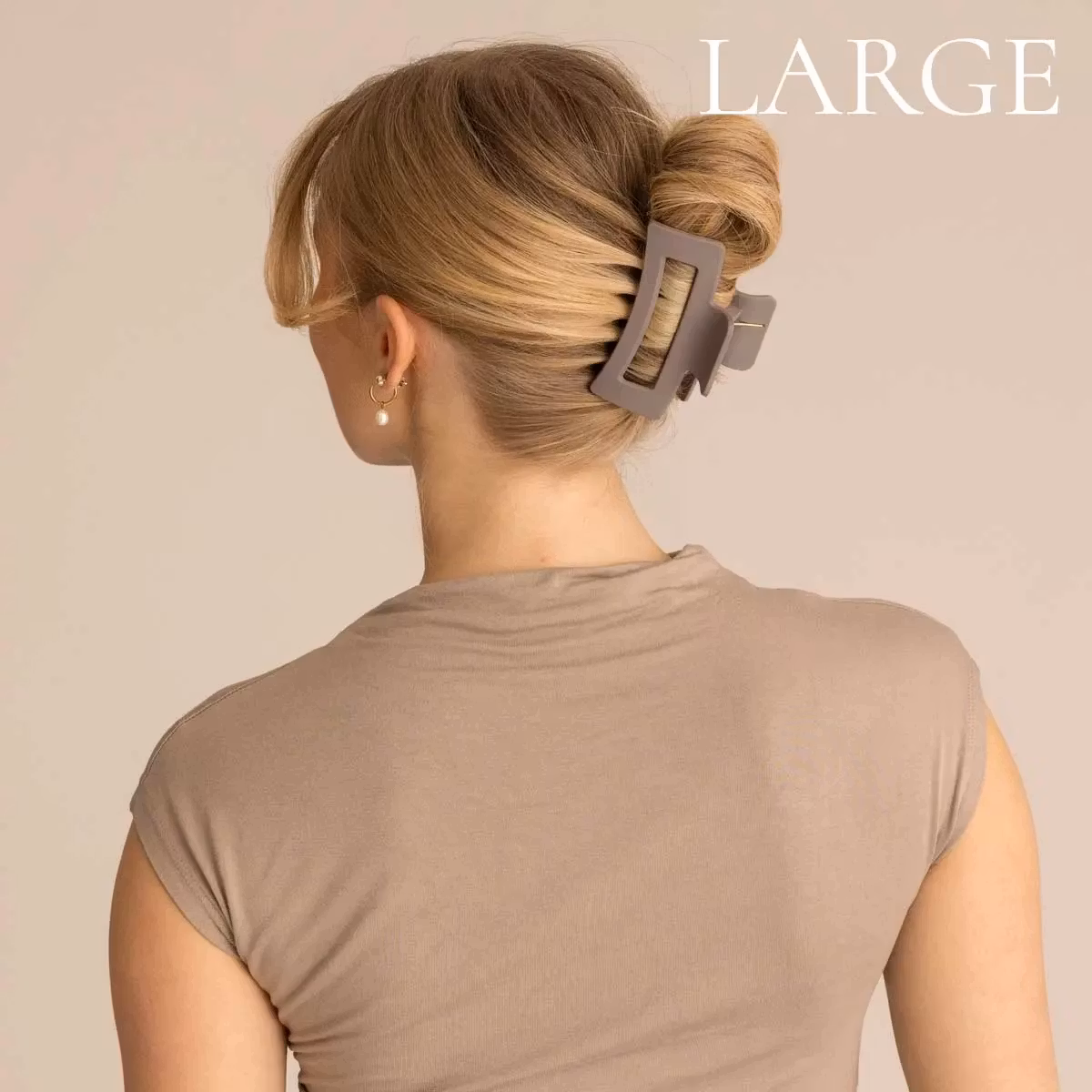 Léonie stora hårklämma gjord i tåligt polykarbonat och passar perfekt för dig som är ute efter en stilren heluppsättning men även halvuppsättning för dig med lite tjockare hår. Klämman är speciellt framtagen för att passa de flesta hårtyper och den matta ytan gör att den får extra bra grepp i håret, även för dig med glattare hår.